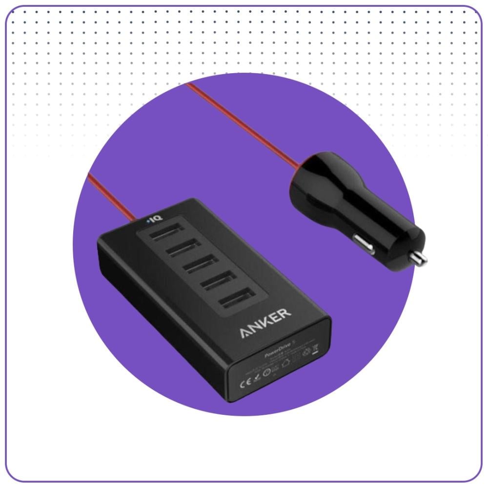 شاحن السيارة ANKER PowerDrive 5 هو الحل المثالي لشحن أجهزة متعددة أثناء التنقل.. تصميمه الأنيق والكابل الطويل 3 متر