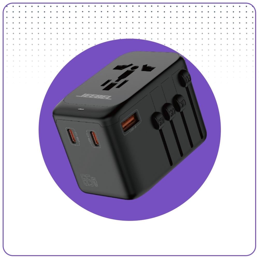 استمتع بشحن سريع وآمن في أي مكان في العالم مع الفيش الدولي 65 واط JEEBEL . يتميز بتصميم ذكي يحتوي على منافذ USB-C PD وUSB-A لتوفير شحن متزامن لأجهزة متعددة مثل الهواتف، الأجهزة اللوحية، والحواسيب المحمولة. يدعم معظم المقابس العالمية مما يجعله الرفيق المثالي للسفر، مع أنظمة حماية متكاملة تضمن سلامة أجهزتك أينما كنت.
